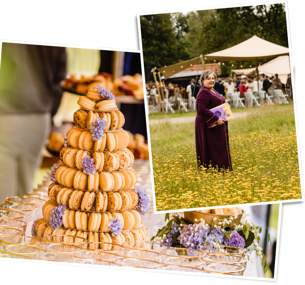 - Ik ben er altijd ruim van te voren om de sfeer te proeven en ceremoniemeesters en getuigen te begroeten. Ook kijk ik of de ceremonieopstelling is zoals we samen hebben bedacht.